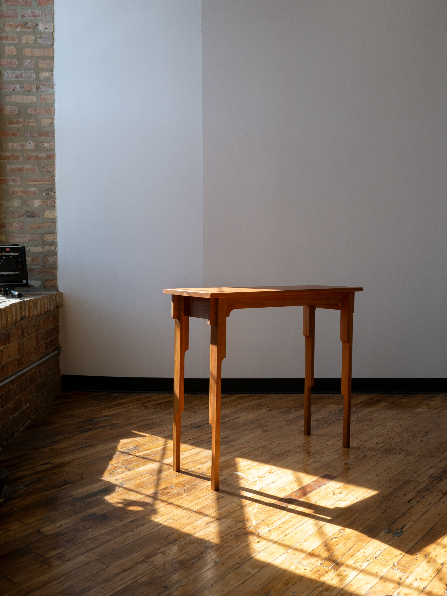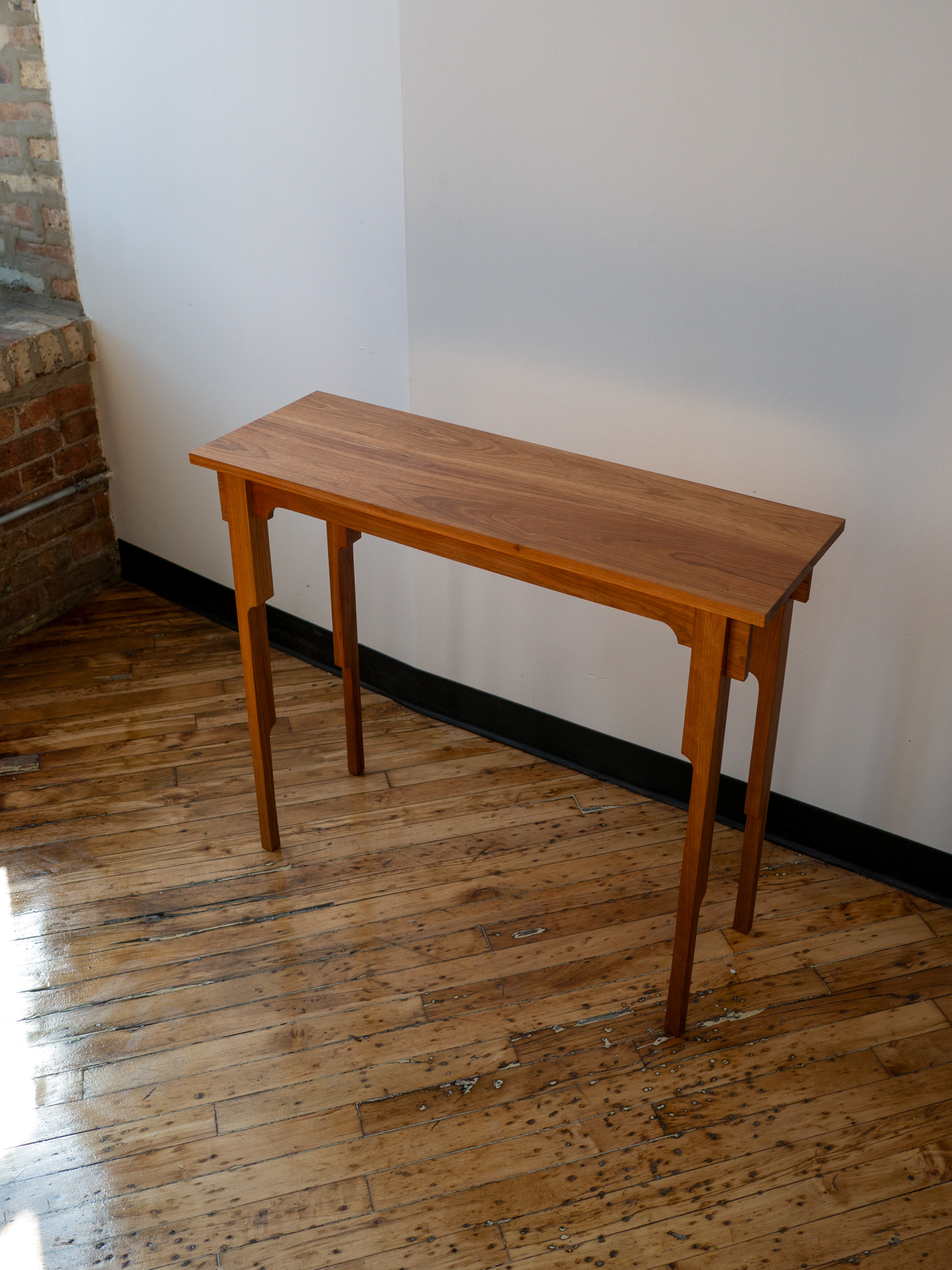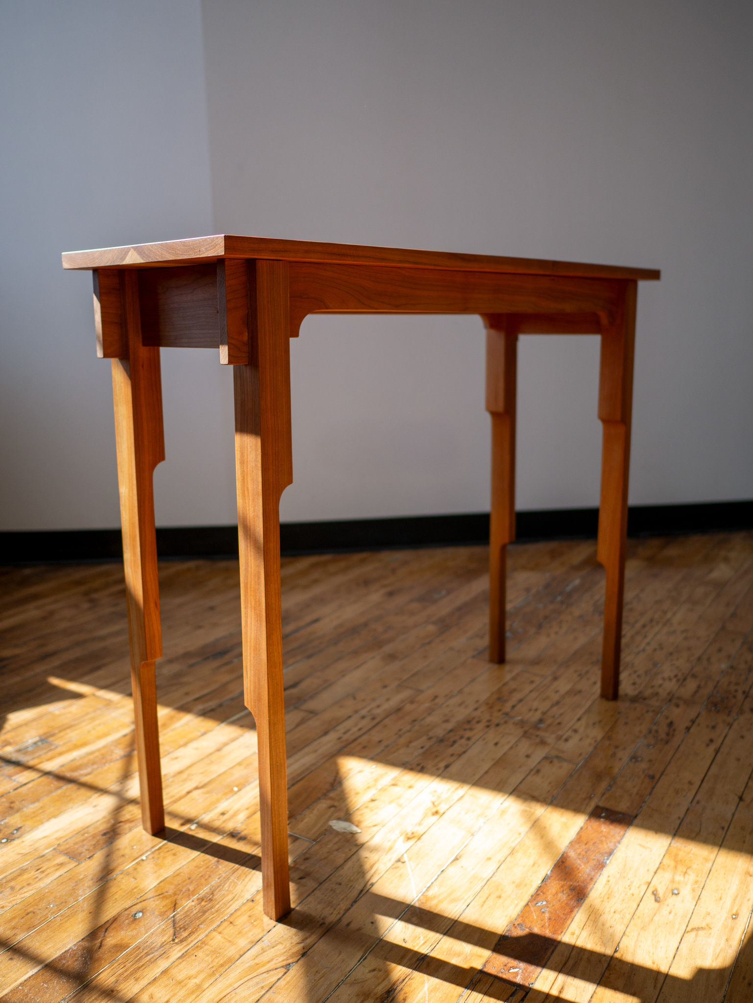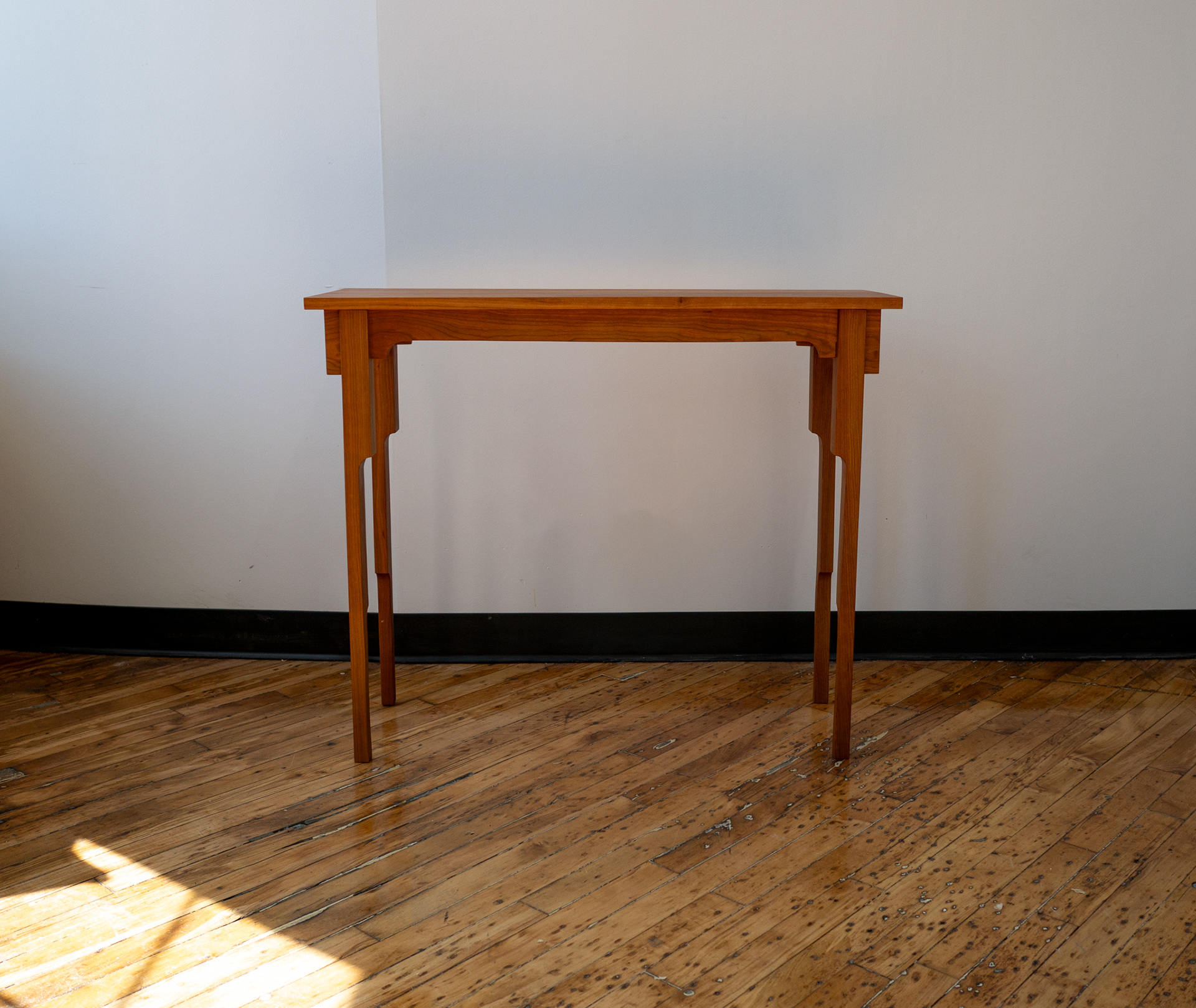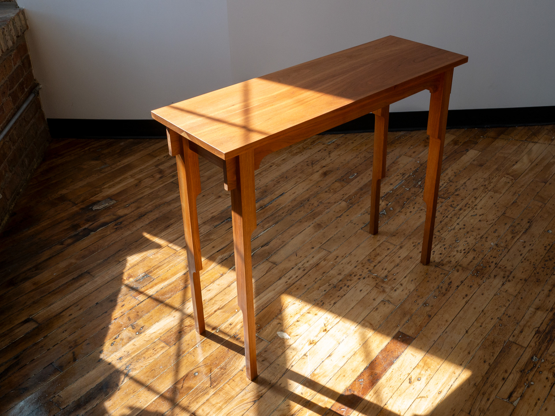 cherry wood console table with linseed oil and pine resin finish