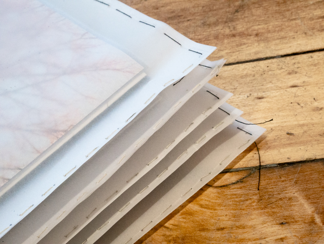 closed edition of 5 with hand-stitched vellum covers