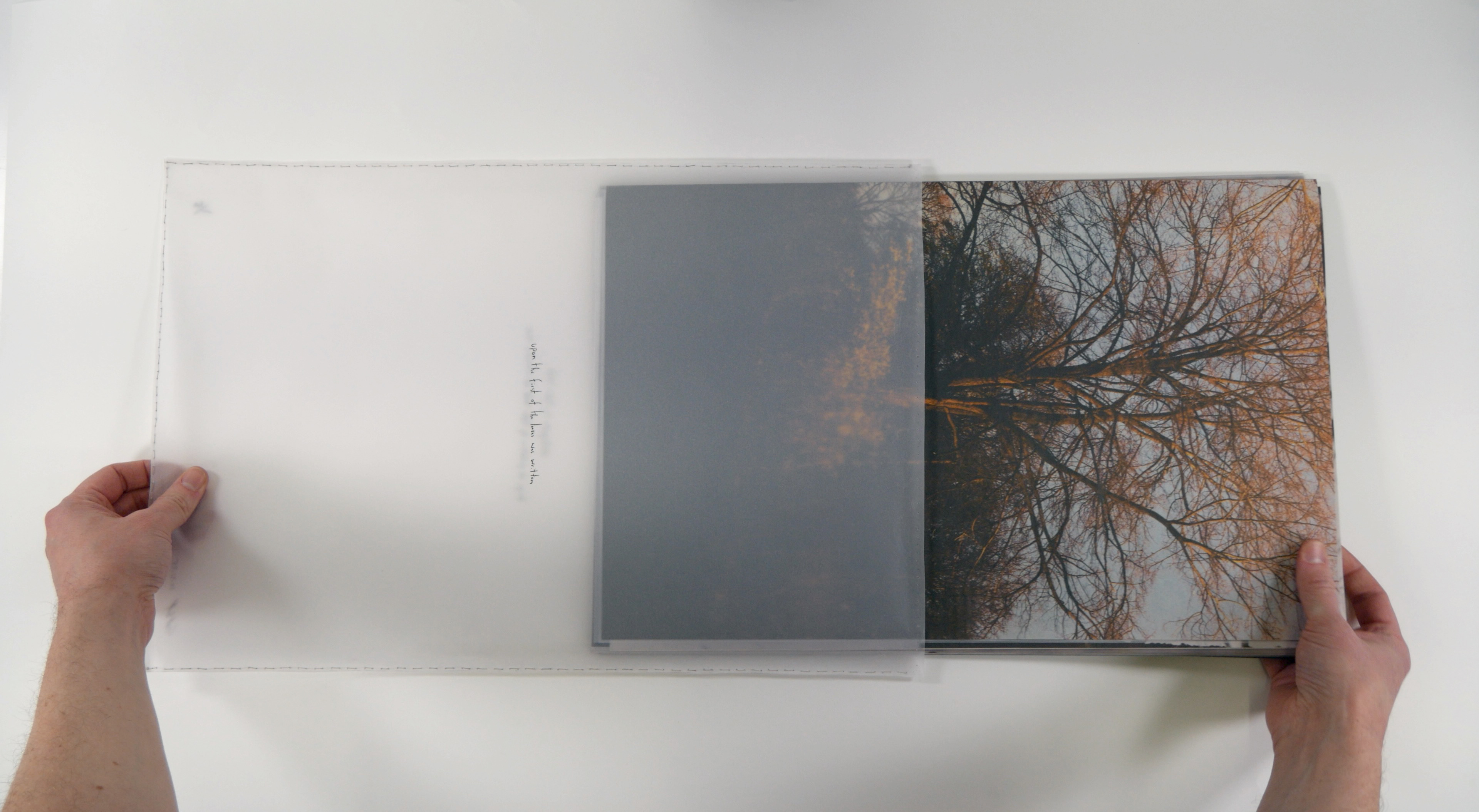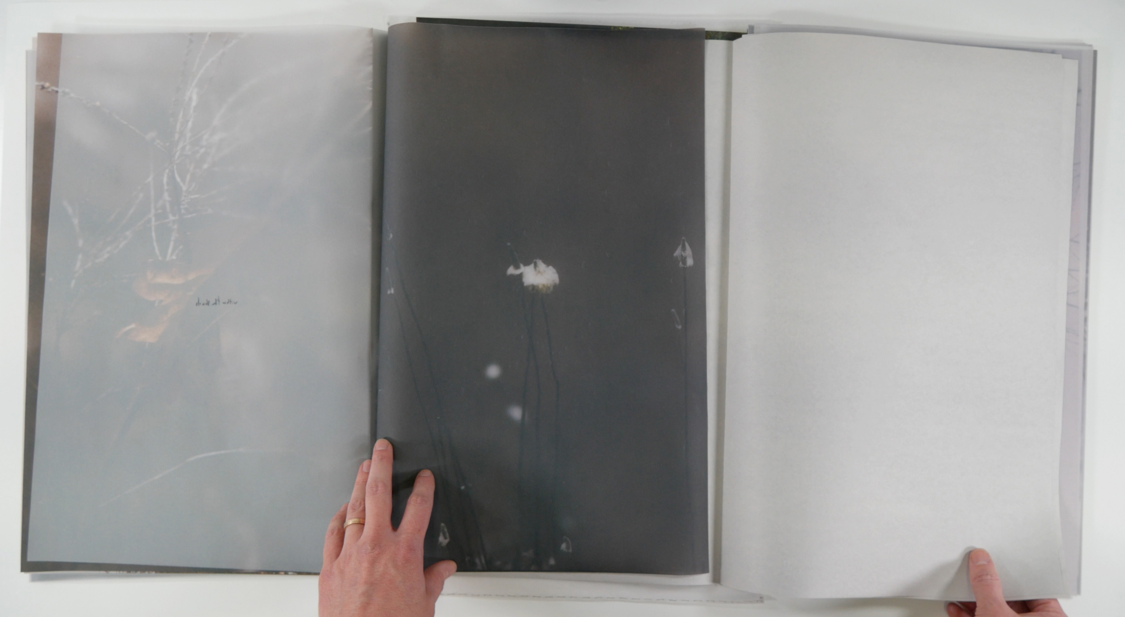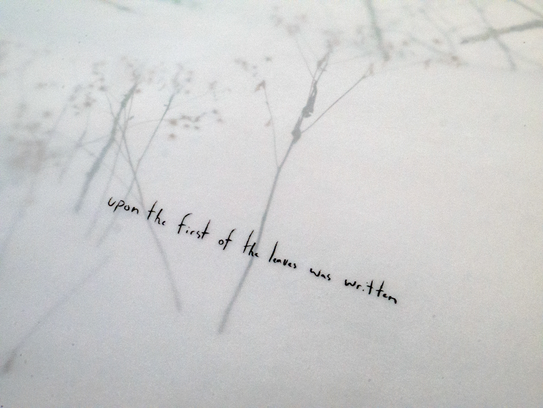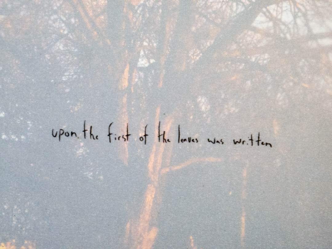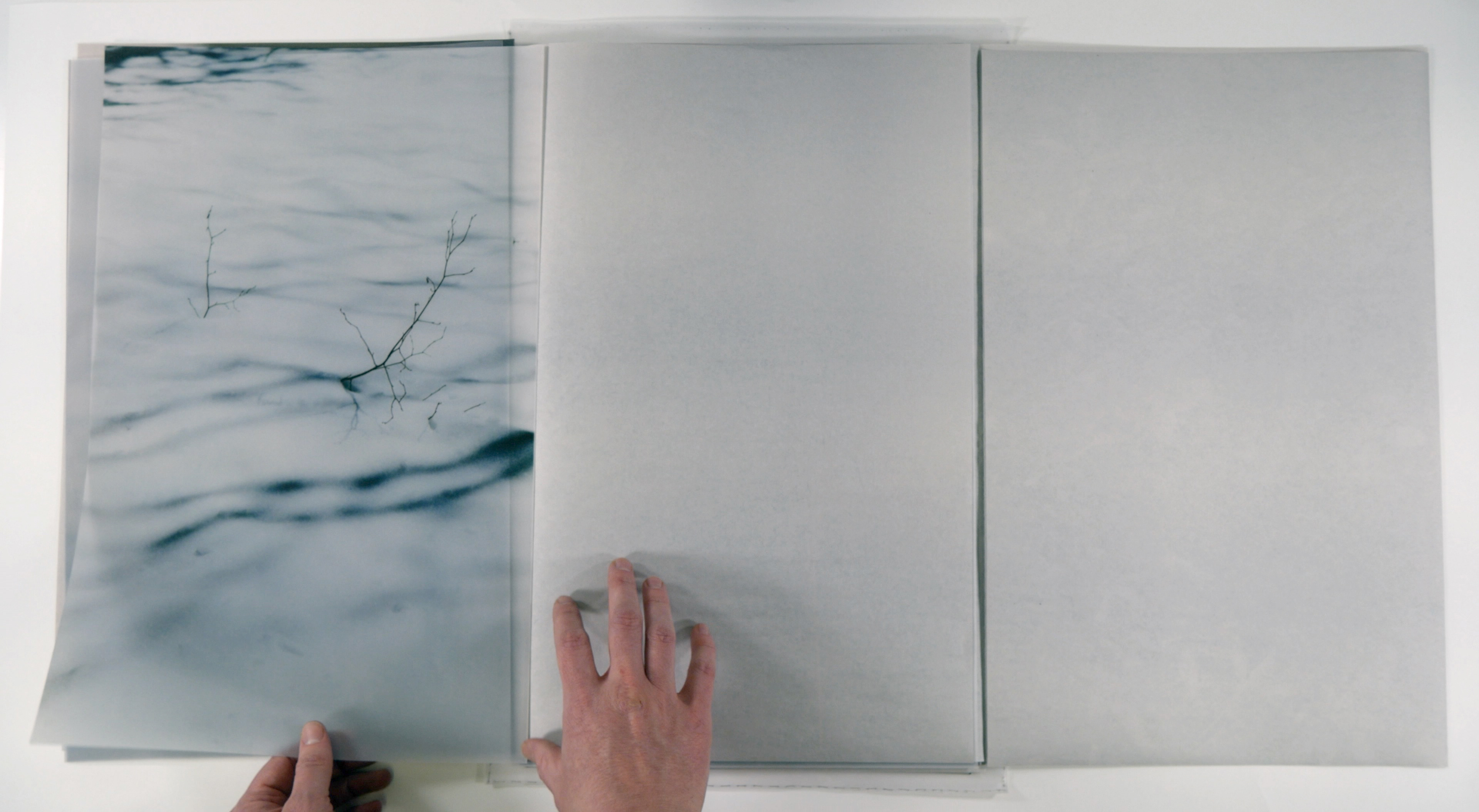 a collection of 12 newsprint and 8 vellum sheets folded into an unbound stack containing 32 approximately 12” x 18” prints and 8 alchemical text fragments exploring the ephemeral in subject and material, each in a unique sequence